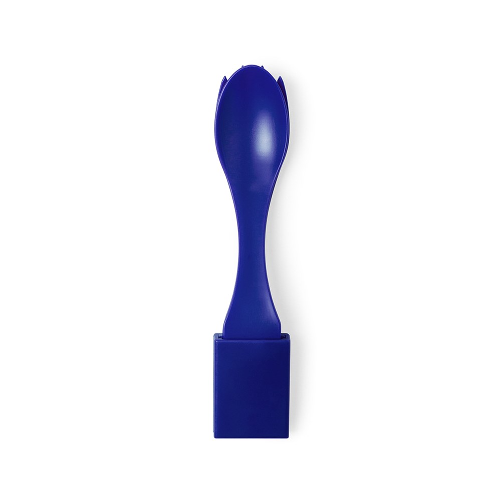 5-in-1 Besteckset in einer Vielzahl von kräftigen, transparenten Farben. Kompakte Größe - mit Messer, Gabel, Löffel und Flaschenöffner sowie Klemme zum Fixieren.