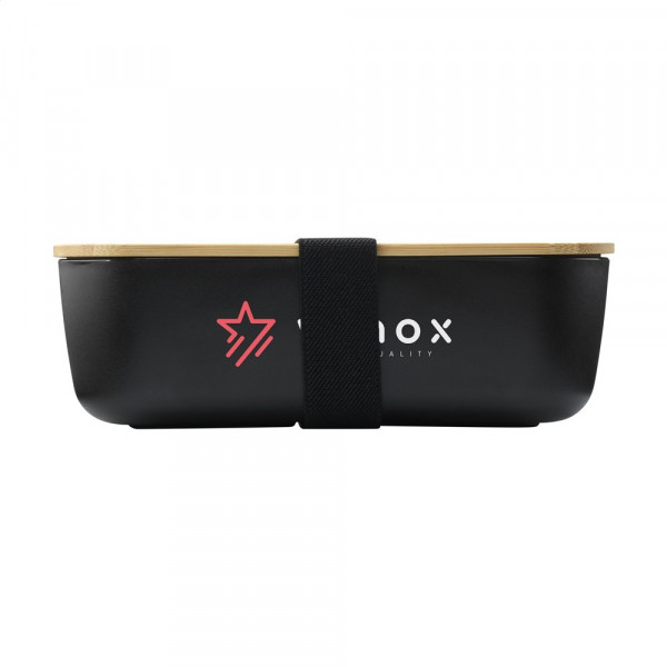 Große Lunchbox aus PP-Kunststoff. Der Deckel ist aus natürlichem Bambus gefertigt und schließt die Lunchbox luftdicht ab. Inklusive elastischem Gurt. Dieses Produkt enthält kein Melamin. Wird einzeln in einem Kraftkarton geliefert.