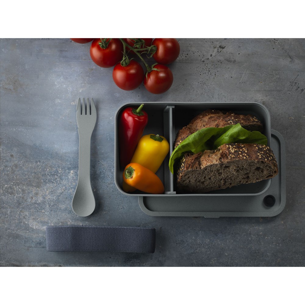 Lunchbox aus PP-Kunststoff. Der perfekt schließende Deckel hat einen Silikondichtring und eine Belüftungsöffnung mit Silikonkappe. Inklusive 3-in-1-Gabel, -Löffel und -Messer. Mit herausnehmbarer Trennwand und Verschlussgummi. Diese Box kann in den Kühlschrank gestellt werden und ist somit auch als luftdichte Frischhaltebox verwendbar. Langlebig und umweltfreundlich. Geeignet für den Einsatz in der Mikrowelle und im Gefrierschrank. Wird einzeln in einem Kraftkarton geliefert.
