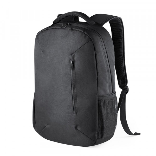 Hochwertiger Rucksack aus strapazierfähigem 1200D-Nylon mit elegantem schwarzem Finish. Mit origineller Außentasche mit Reißverschluss und Trolley-Befestigung. Gepolsterte Innenfächer für Laptops bis zu 15" und Tablets bis zu 12". Gepolsterte Schultergurte und ergonomisch gepolsterter Rücken.