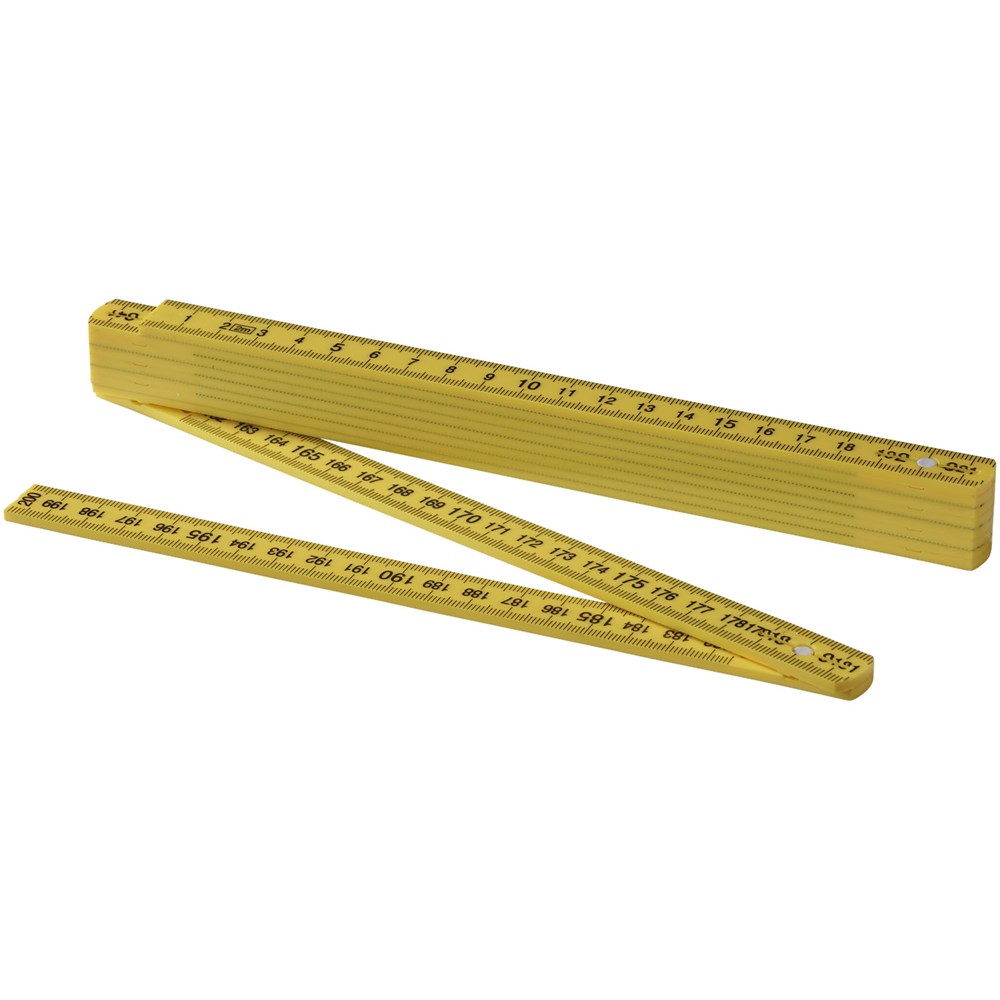 Doppelseitiger Zollstock mit 200 cm auf einer Seite und 79 Zoll auf der anderen. In mehrere zusammenklappbare Teile aufgeteilt.