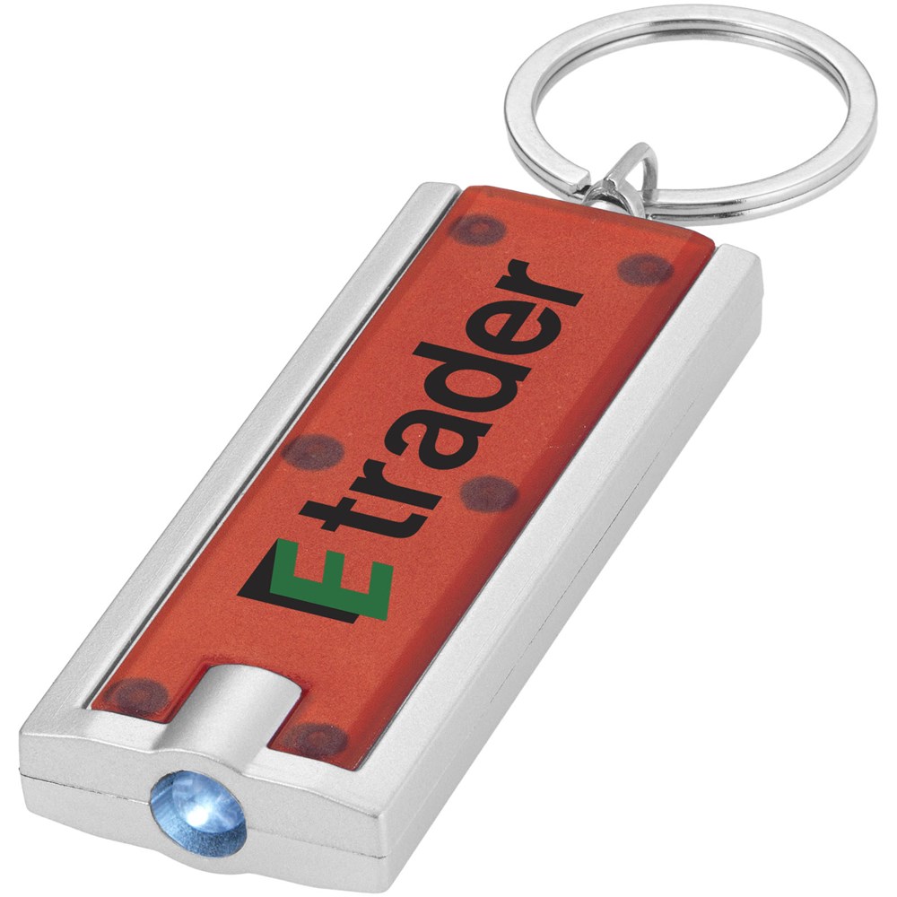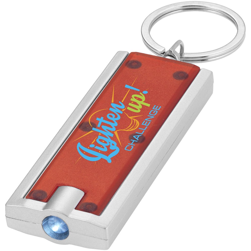 Schlüssellicht mit weißer LED und Drucktaste. Geteilter Schlüsselring aus Metall. Inkl. Batterien.