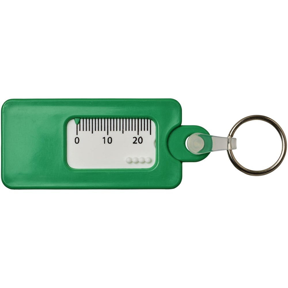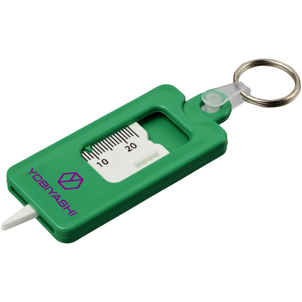 Handliches tragbares Werkzeug zur Überprüfung, ob die Profiltiefe der Autoreifen sicher und innerhalb der gesetzlichen Grenze ist.