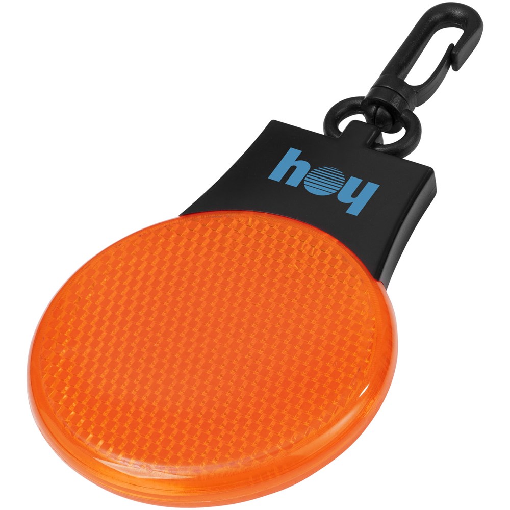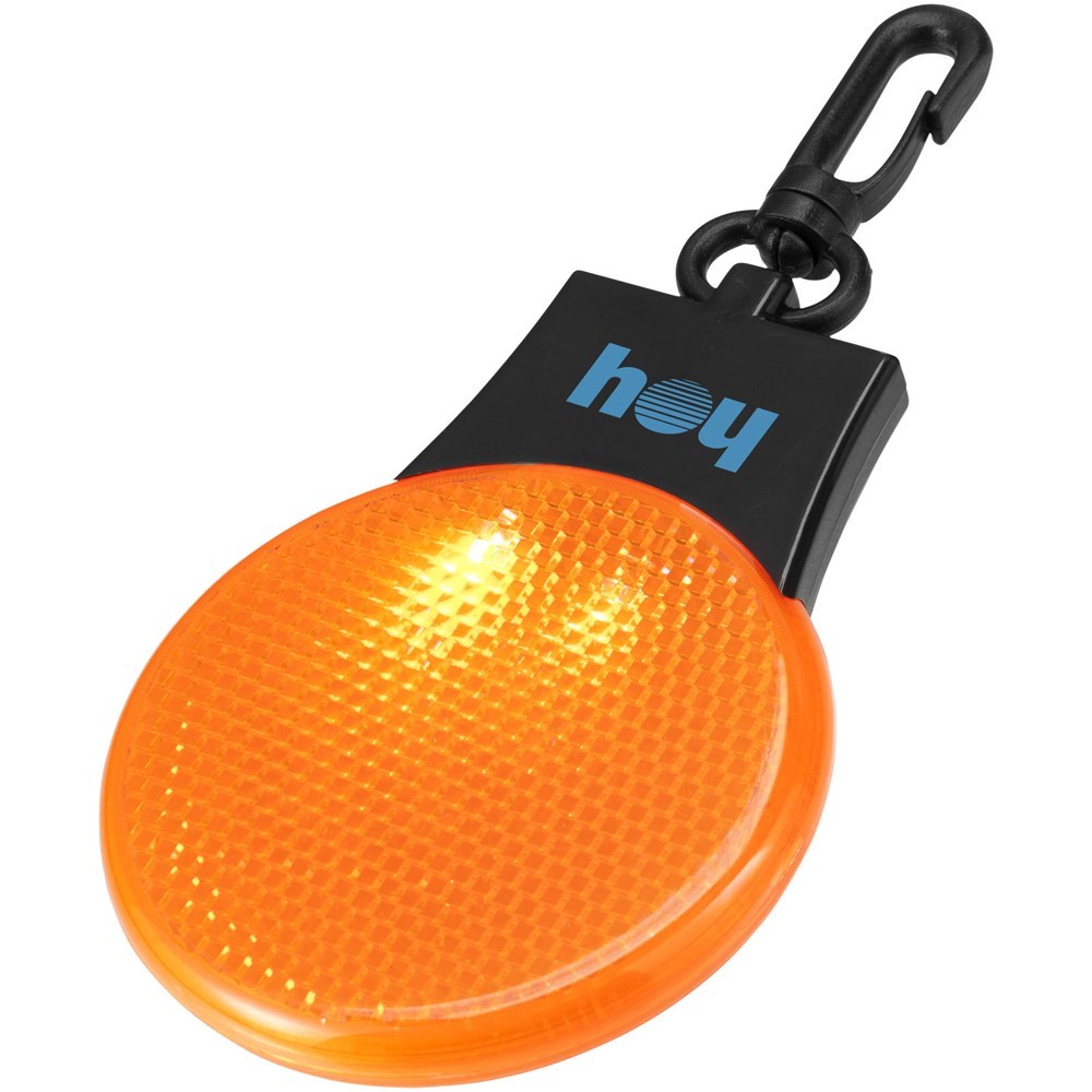 Drei Lichteinstellungen (ein, blinkend und links und rechts blinkend).  Drücken Sie den Ein/Aus-Schalter und den Funktionsschalter auf der Rückseite.  Aufhänge-Clip aus Kunststoff. Inkl. Batterien.