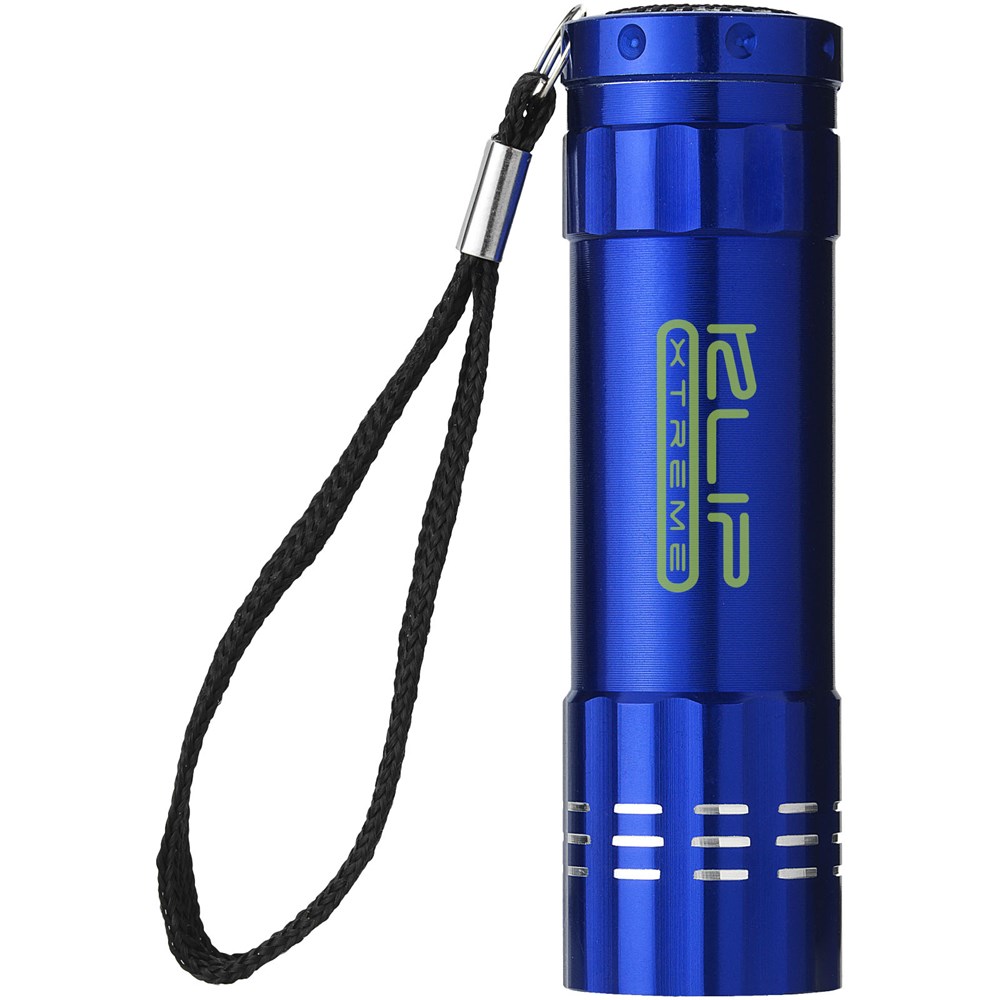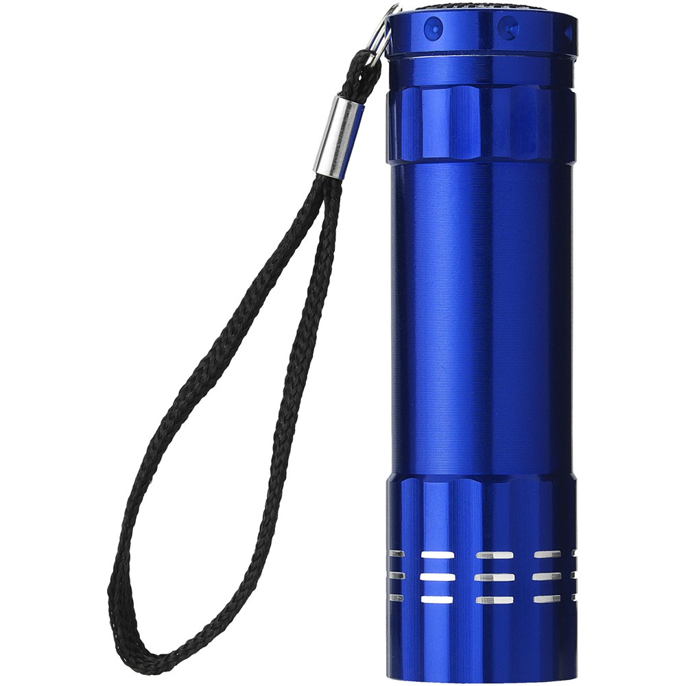 Elegante Taschenlampe mit 9 hellen weißen LEDs mit Trageschlaufe und Ein-Aus-Schalter auf der Rückseite. 3 x AAA Batterien erforderlich.