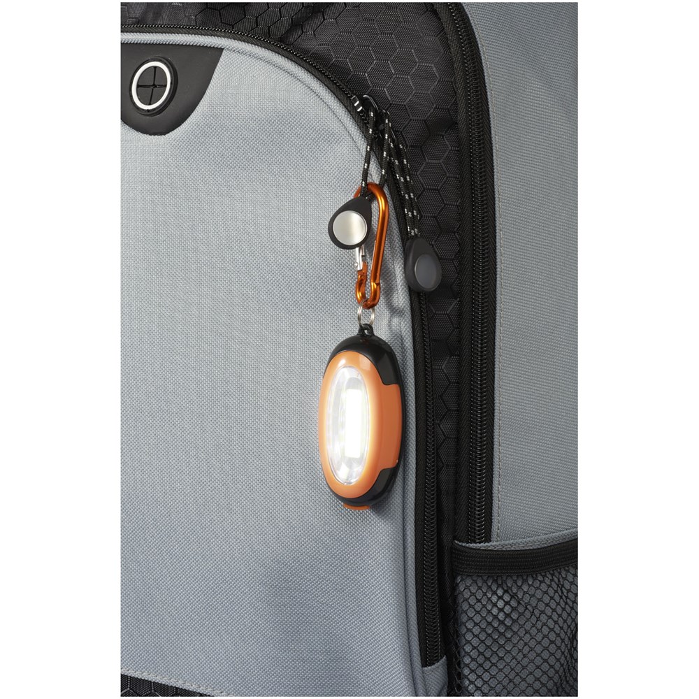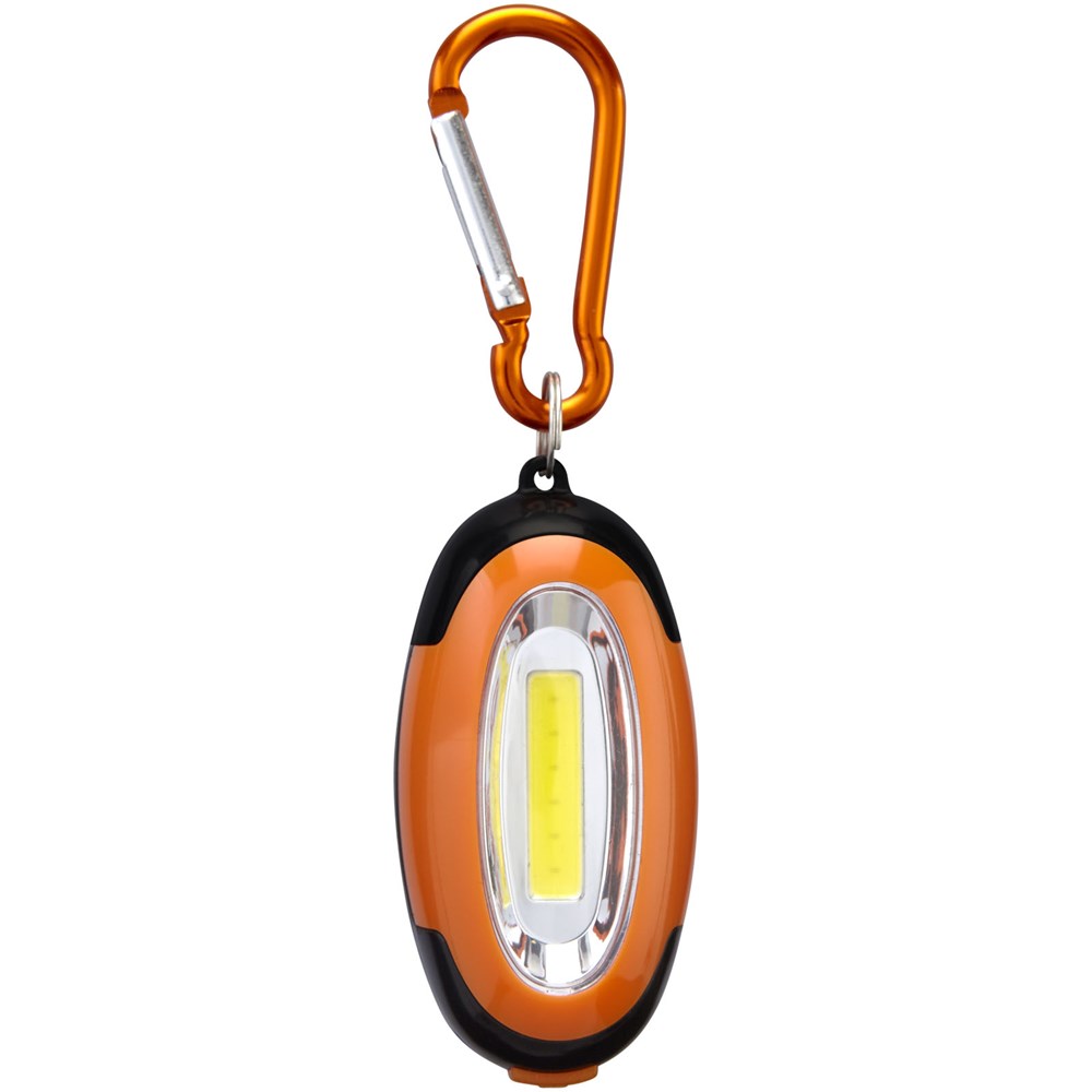 Ultra helles COB Licht mit Ein/Aus Schalter für dauerhaftes und blinkendes Licht. Mit Magnet auf der Rückseite, inkl. Batterien und farblich passendem Karabiner (nicht zum Klettern geeignet).