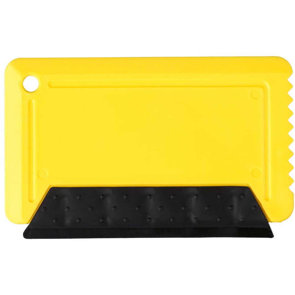 Handlicher Eiskratzer mit integriertem Gummistreifen, kompakt und leicht zu verstauen.