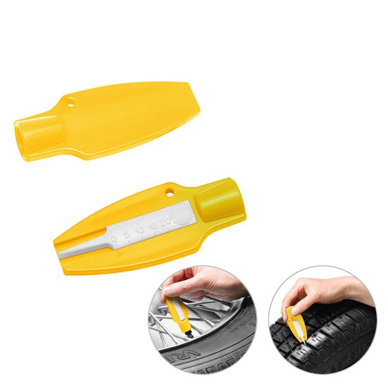 Reifenprofiltiefenmesser mit Ventilkappendreher, gelb/weiß