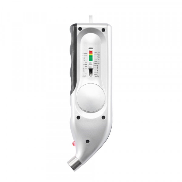 Digitales Reifendruck- und Profiltiefenmessgerät im Kunststoffgehäuse, mit schwarzem Gummigriff und roter LED, Anzeige 5-100 PSI, 0,5-7 Bar, 500-700 Kpa. Inklusive Batterien.
