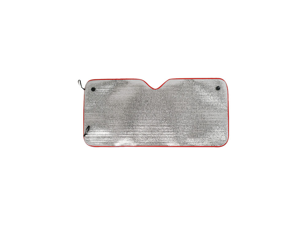 Sonnenblende für die Front- oder Heckscheibe mit Aluminium-Beschichtung (55 g, 1,8 mm stark) und Saugnäpfen.