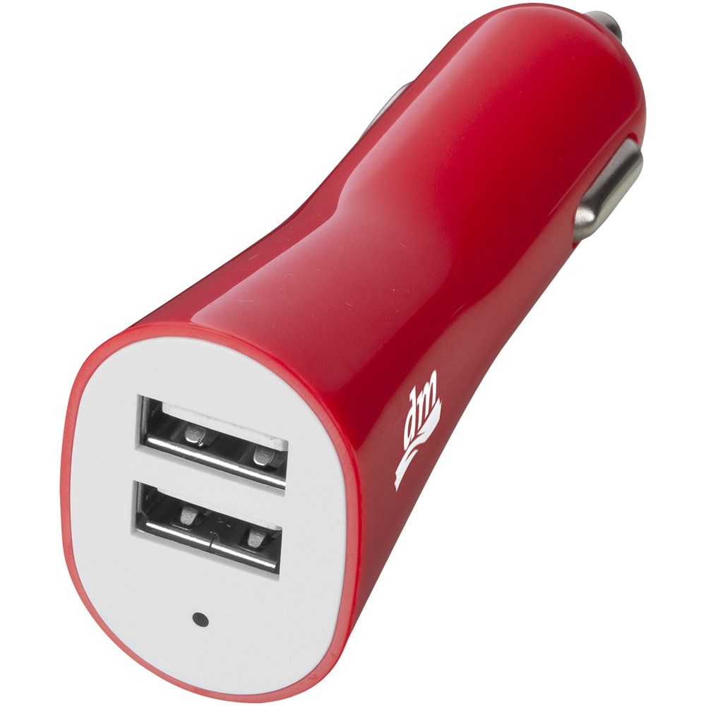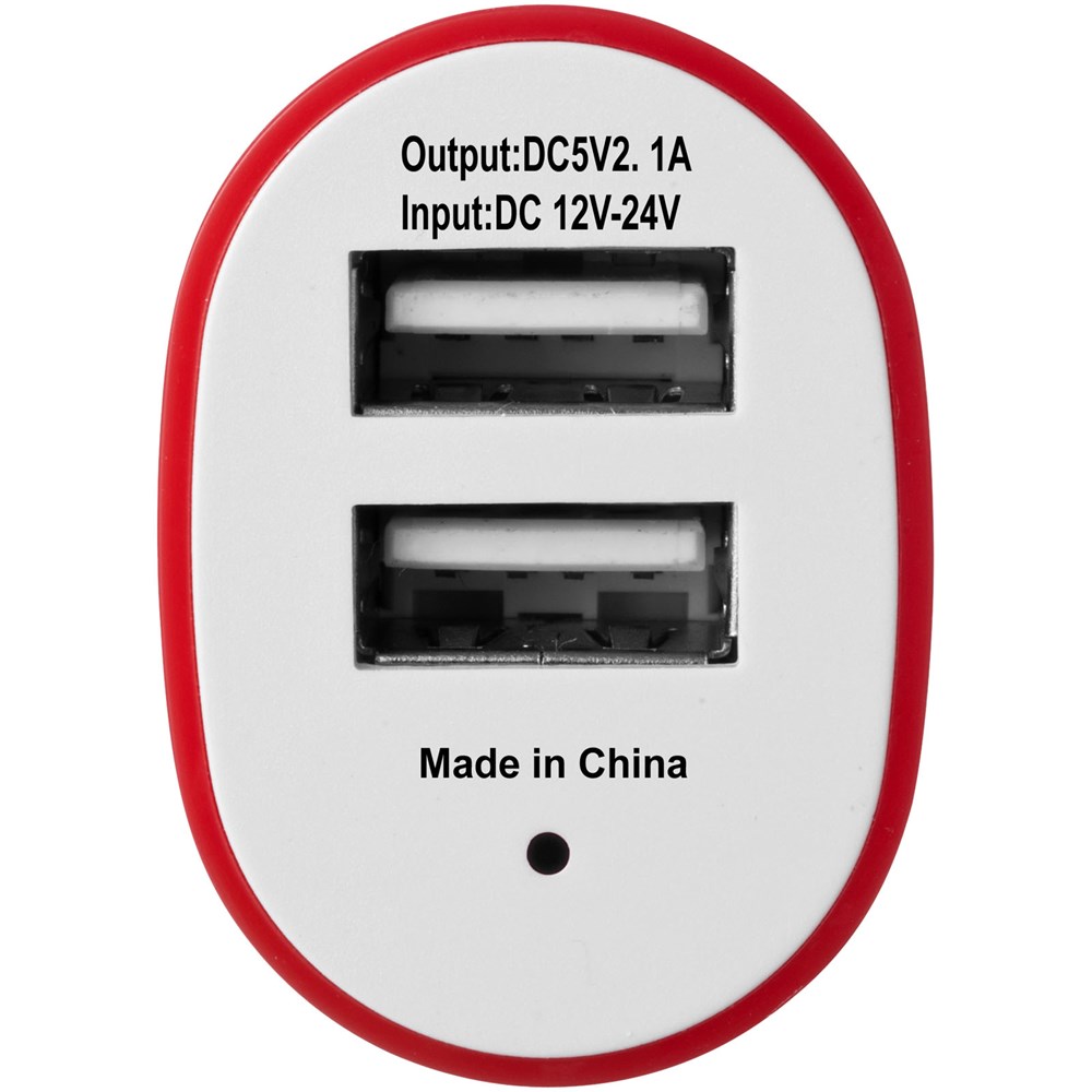 Doppelstecker-Adapter. Kann zum Aufladen persönlicher Geräte an eine Autosteckdose angeschlossen werden. USB-Ausgang: 5 Volt/2,0 A. Eingang: 12 V - 24 V. Geeignet für Autos und LKW.