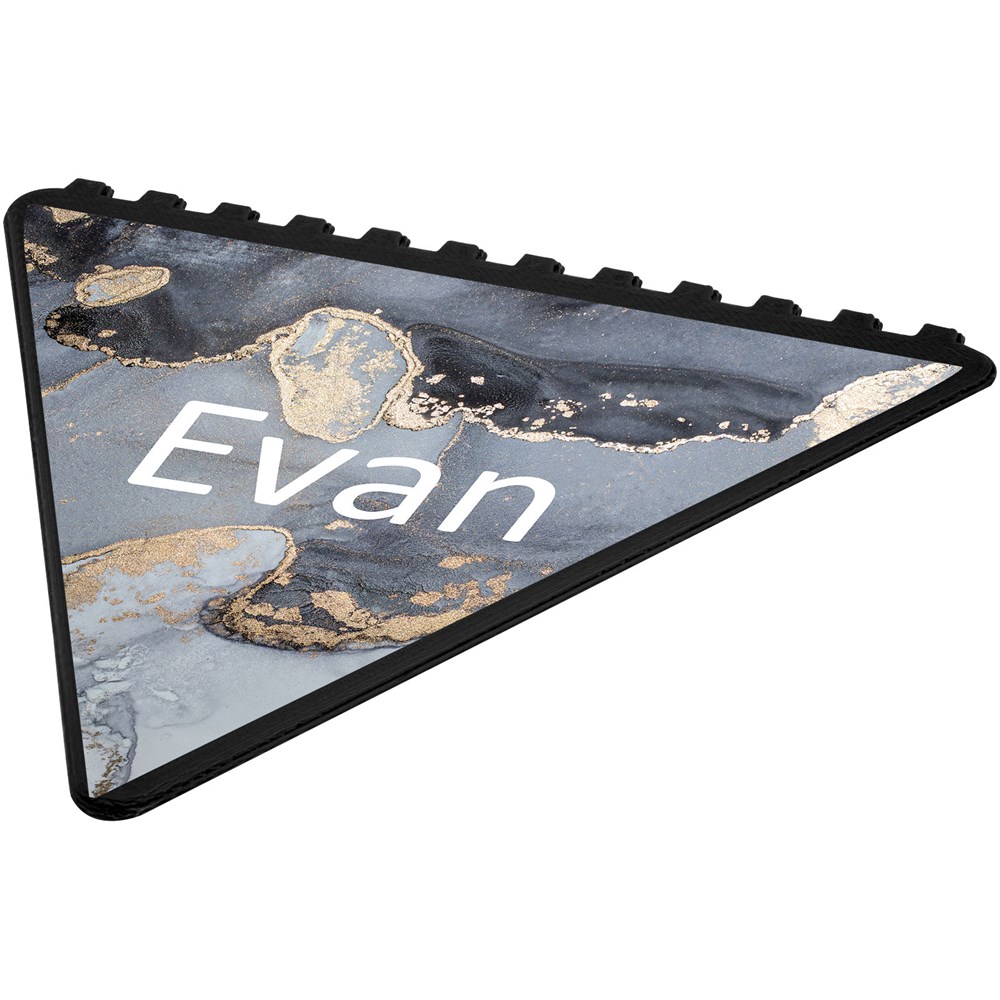 Dreieckiger Eiskratzer um die Windschutzscheibe von Eis und Schnee zu befreien mit einer großen Werbeanbringungssfläche. Jede der 3 Seiten kann zum Eiskratzen verwendet werden. Hergestellt in Großbritannien aus recyceltem Kunststoff.