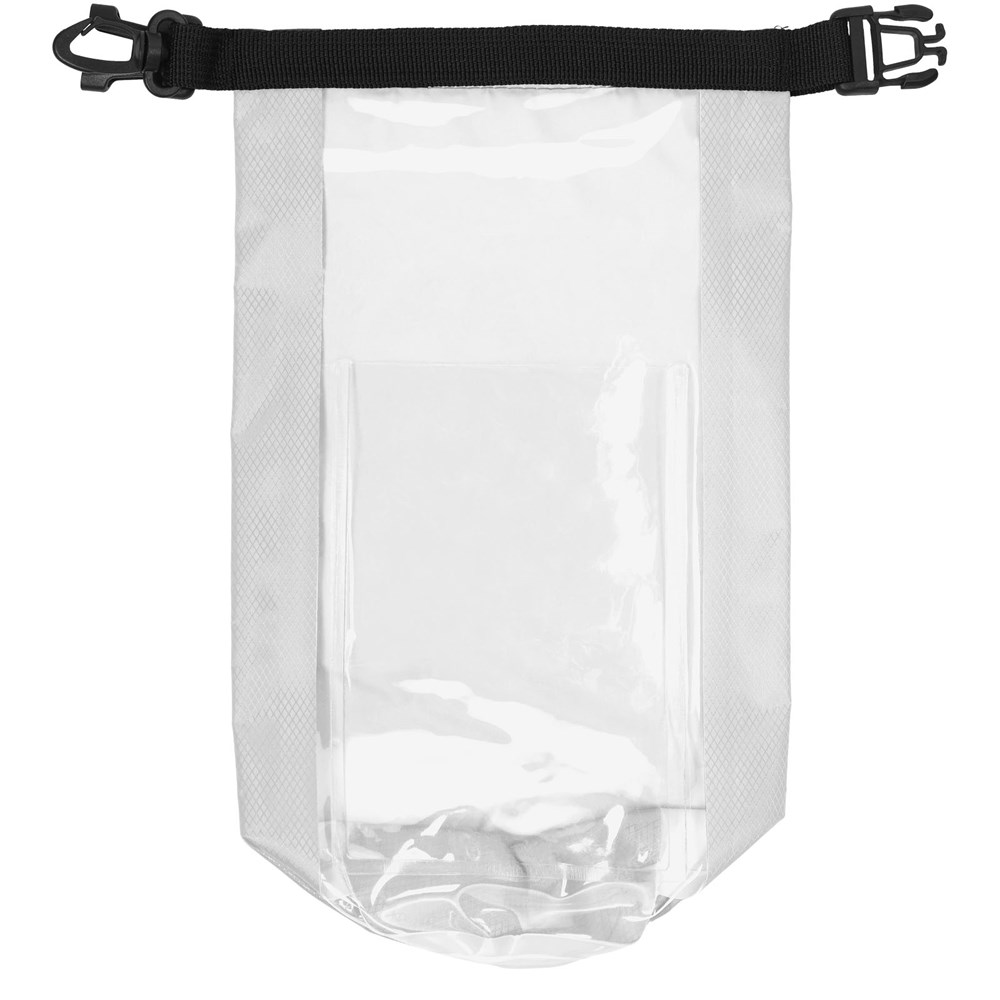 Eine wasserdichte Tasche, die großartige für die Aktivitäten im Freien geeignet ist. Der Rolltop-Verschluss mit Kunststoffschnalle stellt die trockene und sichere Aufbewahrung von Wertsachen sicher. Ein transparentes Fenster ermöglicht den Zugriff auf das Gerät während der Aufbewahrung. Kann problemlos an einer Tasche oder einem Gürtel befestigt werden. Heruntergerollt und verschlossen beträgt das Fassungsvermögen 2 Liter.