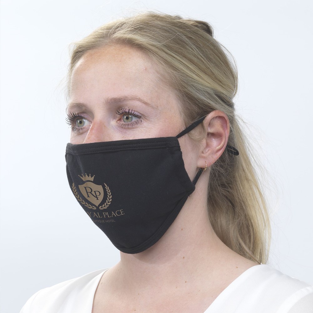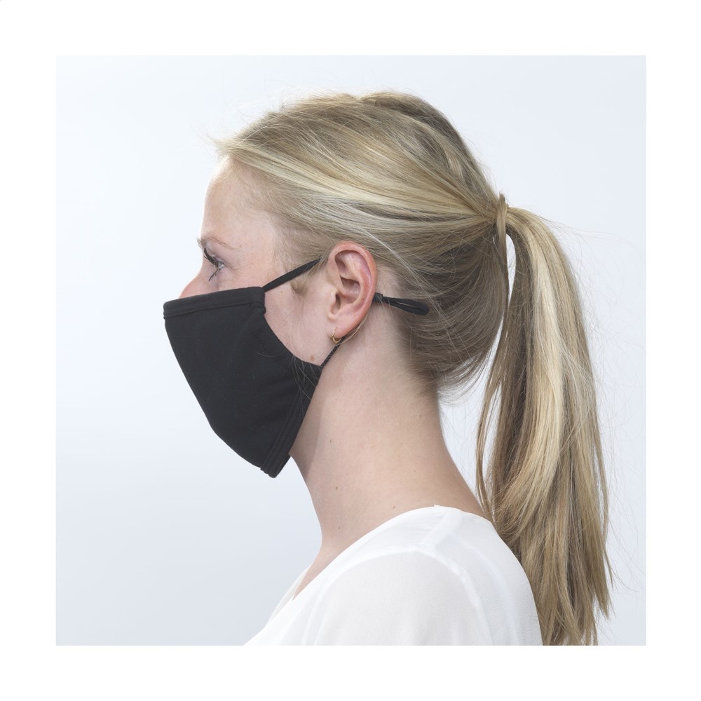 Bequeme, weiche und atmungsaktive zweilagige Mundschutzmaske aus 100% Baumwolle (2 x 190 g/m²).