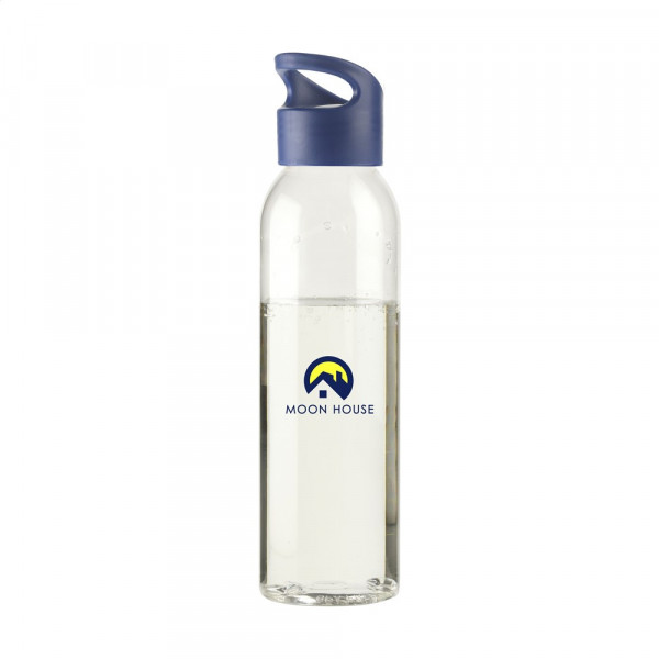 Luxuriöse Wasserflasche aus klarem Eastman Tritan Kunststoff: umweltfreundlich, BPA-frei, beständig und wiederverwendbar. Mit praktischem Schraubdeckel und tropfsicher. Fassungsvermögen: 650 ml.