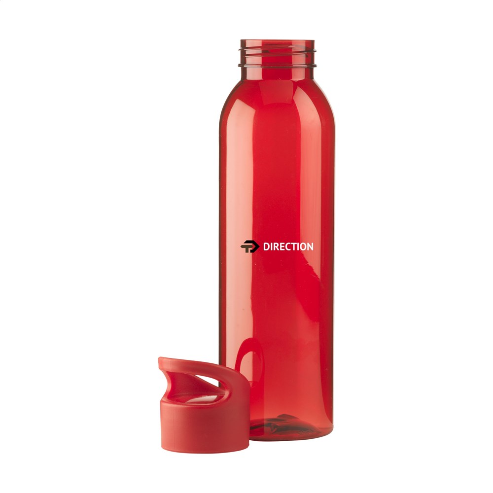 Luxuriöse Wasserflasche aus klarem Eastman Tritan Kunststoff: umweltfreundlich, BPA-frei, beständig und wiederverwendbar. Mit praktischem Schraubdeckel und tropfsicher. Fassungsvermögen: 650 ml.