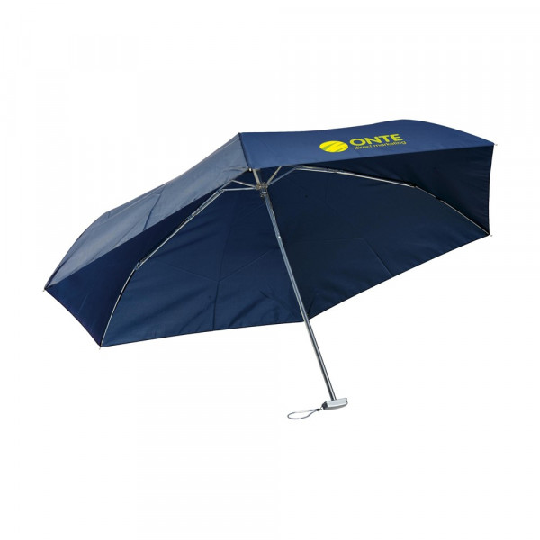 Leichter (225 g.), einklappbarer Regenschirm mit Aluminium Schaft und Kunststoffhandgriff und Handschlaufe, in Hülle.