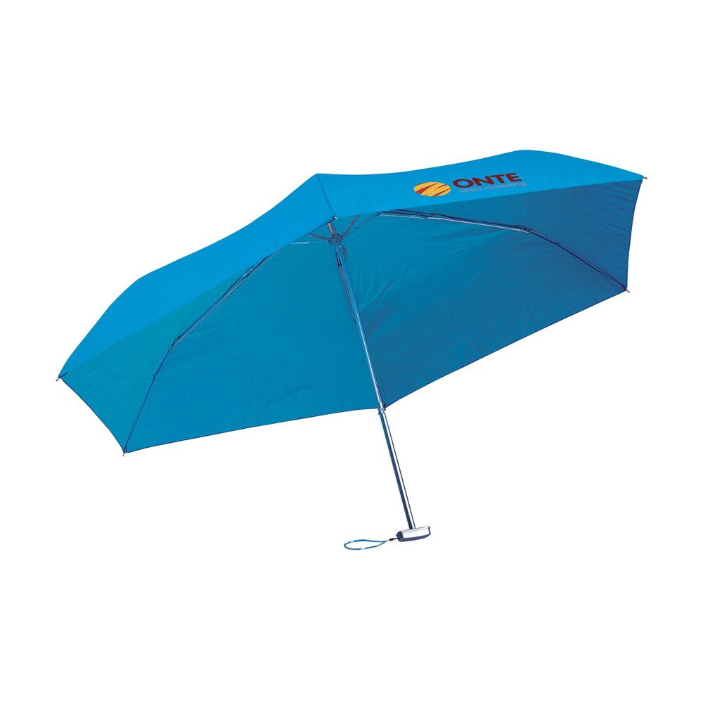 Leichter (225 g.), einklappbarer Regenschirm mit Aluminium Schaft und Kunststoffhandgriff und Handschlaufe, in Hülle.