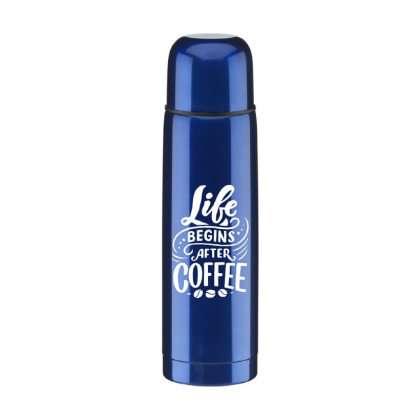 Vakuumisolierte Edelstahl-Thermoflasche mit Schraubverschluss/Trinkbecher und handlichem Schanksystem mit Druckverschluss. Fassungsvermögen 500 ml. Pro Stück in einer Verpackung.