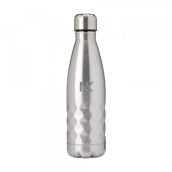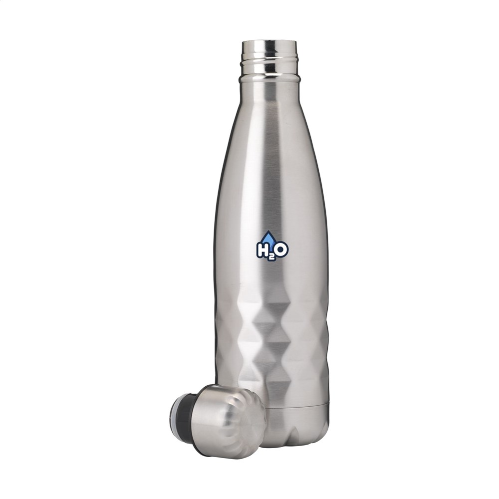 Doppelwandige, auslaufsichere Wasserflasche/Thermoflasche aus Edelstahl mit auffälligem geometrischem 3D-Rautenmuster. Geeignet zur Temperaturerhaltung von kalten oder heißen Getränken. Fassungsvermögen: 500 ml. Pro Stück in einer Verpackung.