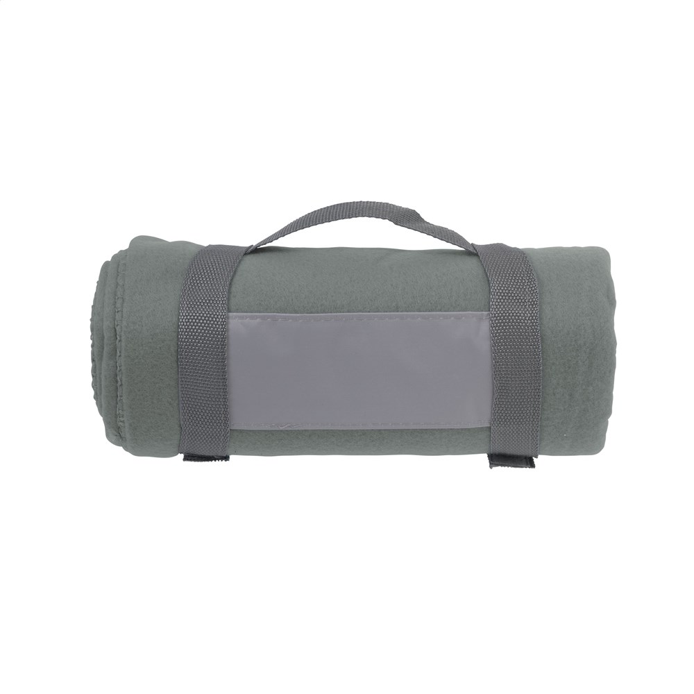 Decke aus 100% Fleece (180 g/m²). Mit praktischer Trageschlaufe. Maße aufgeklappt 150 x 120 cm.