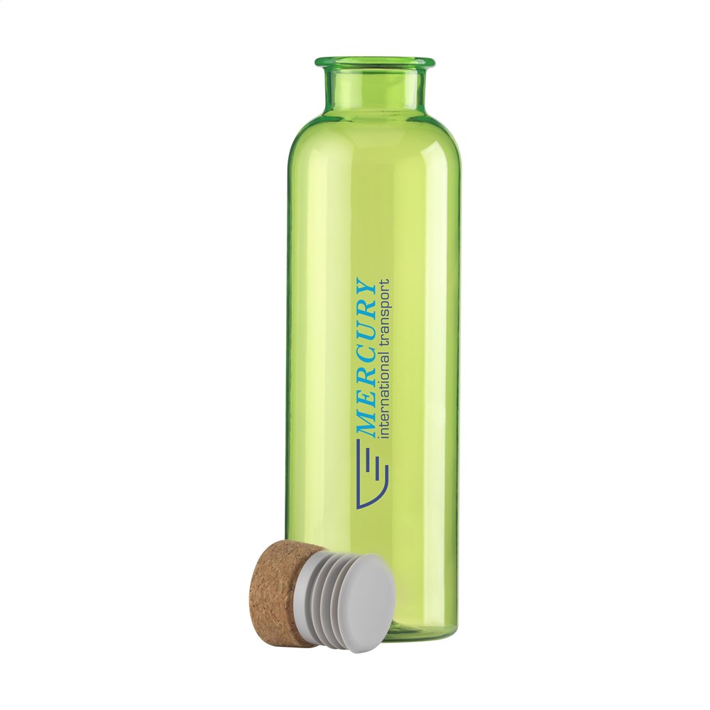 Transparente, BPA-freie Wasserflasche aus Eastman Tritan™ Material. Mit verspielter Korkkappe. Fassungsvermögen: 650 ml.