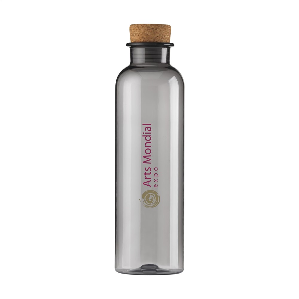 Transparente, BPA-freie Wasserflasche aus Eastman Tritan™ Material. Mit verspielter Korkkappe. Fassungsvermögen: 650 ml.