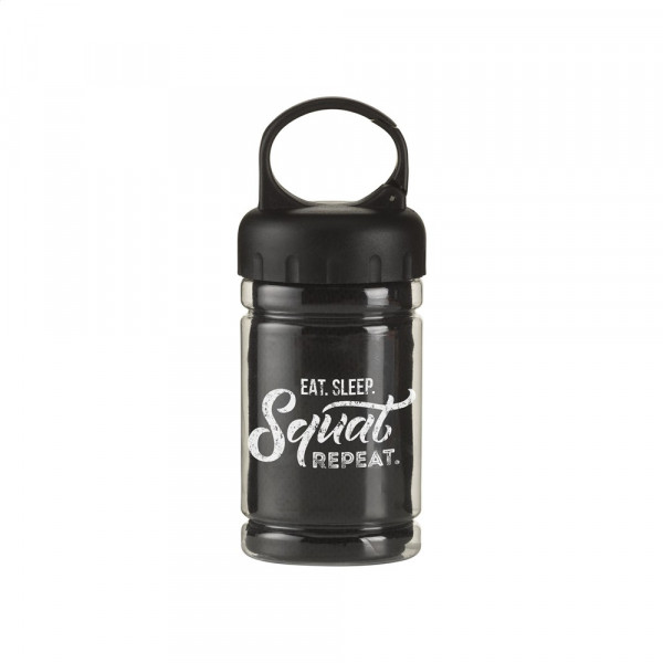 Spezielles Kühlhandtuch aus 100 % Polyester. Nach dem Eintauchen in kaltes Wasser kann dieses Handtuch bei sportlichen Aktivitäten oder Sonnenbrand kühlen. Maße 30 x 80 cm. Ideales Format, um es zur Kühlung im Nacken zu tragen. In transparentem Gehäuse mit ABS-Schraubverschluss mit Karabinerhaken.