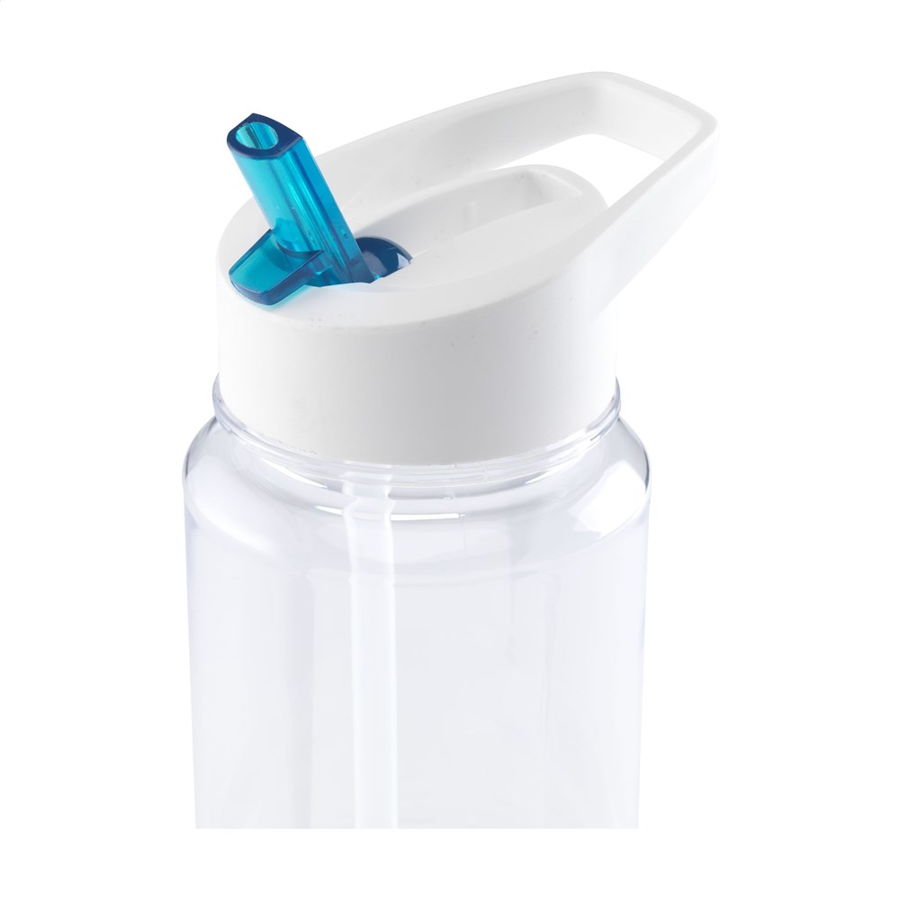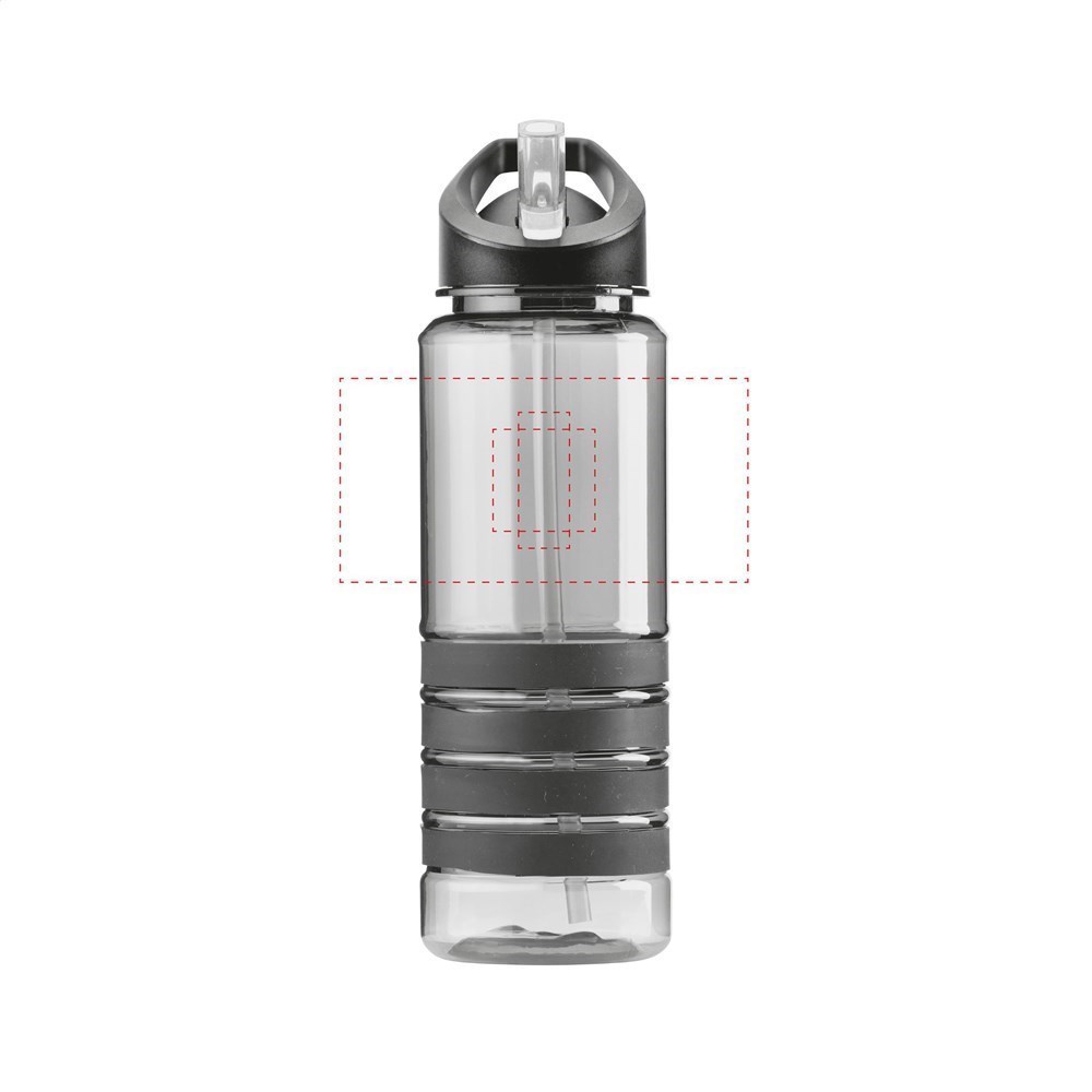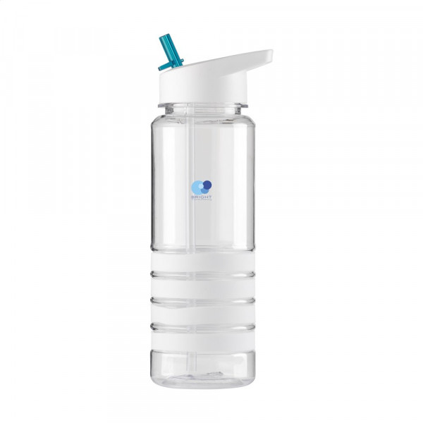Wiederverwendbare, trendige Wasserflasche mit einklappbarem Mundstück und verschließbarem Strohhalm. Aus transparentem, BPA-freiem Eastman Tritan™ Kunststoff. Die vier abnehmbaren Silikonringe fallen sofort auf und verleihen der Flasche einen spielerischen Farbakzent. Fassungsvermögen: 750 ml. Erhältlich in verschiedenen Farbkombinationen.
