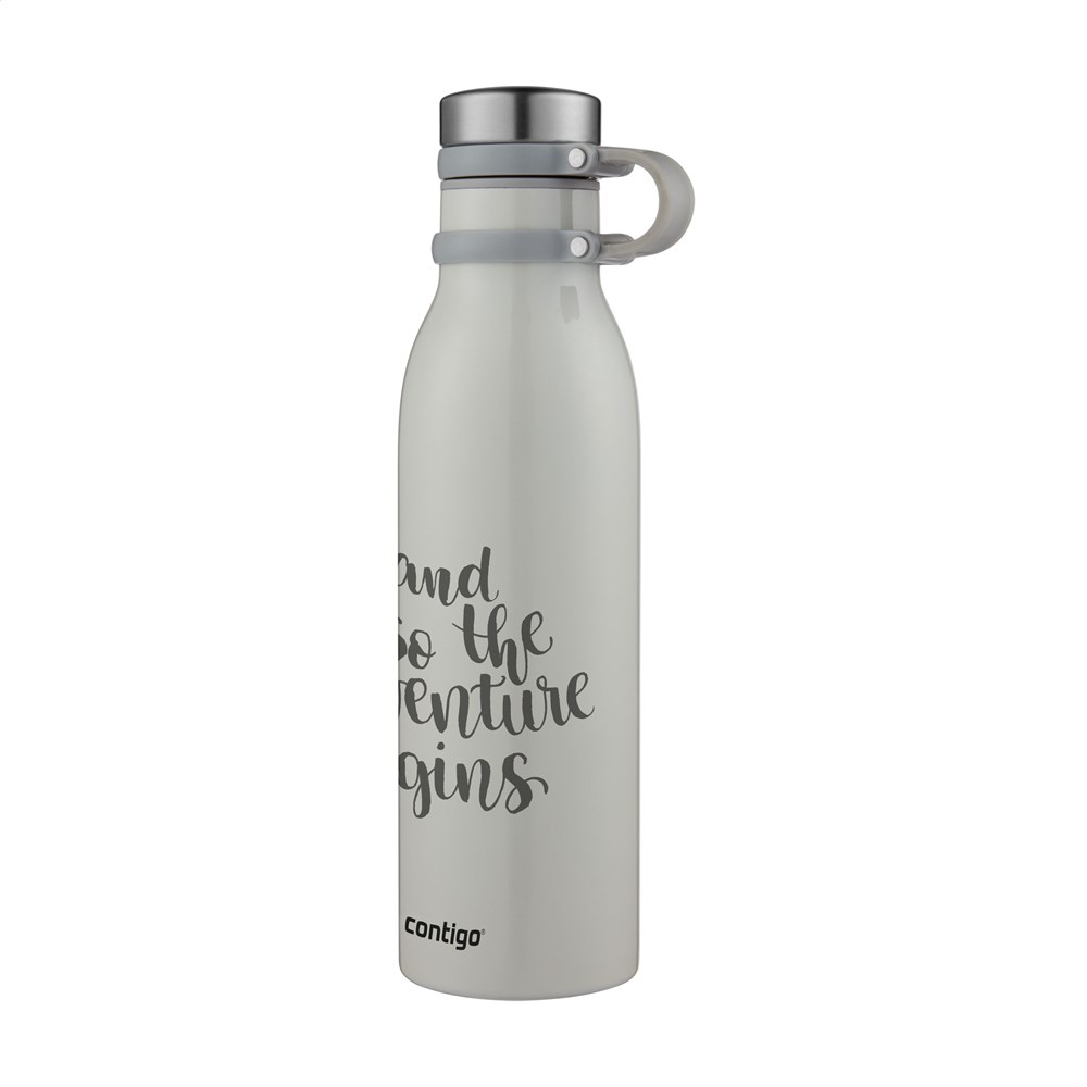 Doppelwandige, vakuumisolierte Wasserflasche/Thermoflasche aus Edelstahl. Die markante Metallic-Deckschicht macht diese Trinkflasche richtig auffällig. Der Schraubverschluss ist an einer Silikonschlaufe befestigt und rastet beim Öffnen der Flasche ein. Heiße Getränke bleiben bis zu 10 Stunden heiß und kalte Getränke bis zu 24 Stunden kalt. 100 % Auslaufsicher. Inkl. Bedienungsanleitung. Fassungsvermögen: 590 ml. LAGERBESTANDSINFORMATION: Bis zu 1.000 Stück innerhalb von 10 Arbeitstagen verfügbar. Ausnahmen vorbehalten. Contigo® der Spezialist bei Qualität, Design und Technologie. Direkt erkennbar an dem schlichten und zeitlosen Design. Die innovativen Contigo Wasserflaschen und Thermobecher sind geschmacksneutral und BPA-frei.Die Trinkflaschen sind einer Hand zu bedienen und garantiert tropfsicher, so ist die überall und jederzeit nutzbar. Entscheiden Sie sich für eine dauerhafte Werbung mit unseren Favoriten!