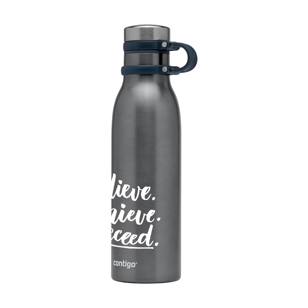 Doppelwandige, vakuumisolierte Wasserflasche/Thermoflasche aus Edelstahl. Die markante Metallic-Deckschicht macht diese Trinkflasche richtig auffällig. Der Schraubverschluss ist an einer Silikonschlaufe befestigt und rastet beim Öffnen der Flasche ein. Heiße Getränke bleiben bis zu 10 Stunden heiß und kalte Getränke bis zu 24 Stunden kalt. 100 % Auslaufsicher. Inkl. Bedienungsanleitung. Fassungsvermögen: 590 ml. LAGERBESTANDSINFORMATION: Bis zu 1.000 Stück innerhalb von 10 Arbeitstagen verfügbar. Ausnahmen vorbehalten. Contigo® der Spezialist bei Qualität, Design und Technologie. Direkt erkennbar an dem schlichten und zeitlosen Design. Die innovativen Contigo Wasserflaschen und Thermobecher sind geschmacksneutral und BPA-frei.Die Trinkflaschen sind einer Hand zu bedienen und garantiert tropfsicher, so ist die überall und jederzeit nutzbar. Entscheiden Sie sich für eine dauerhafte Werbung mit unseren Favoriten!