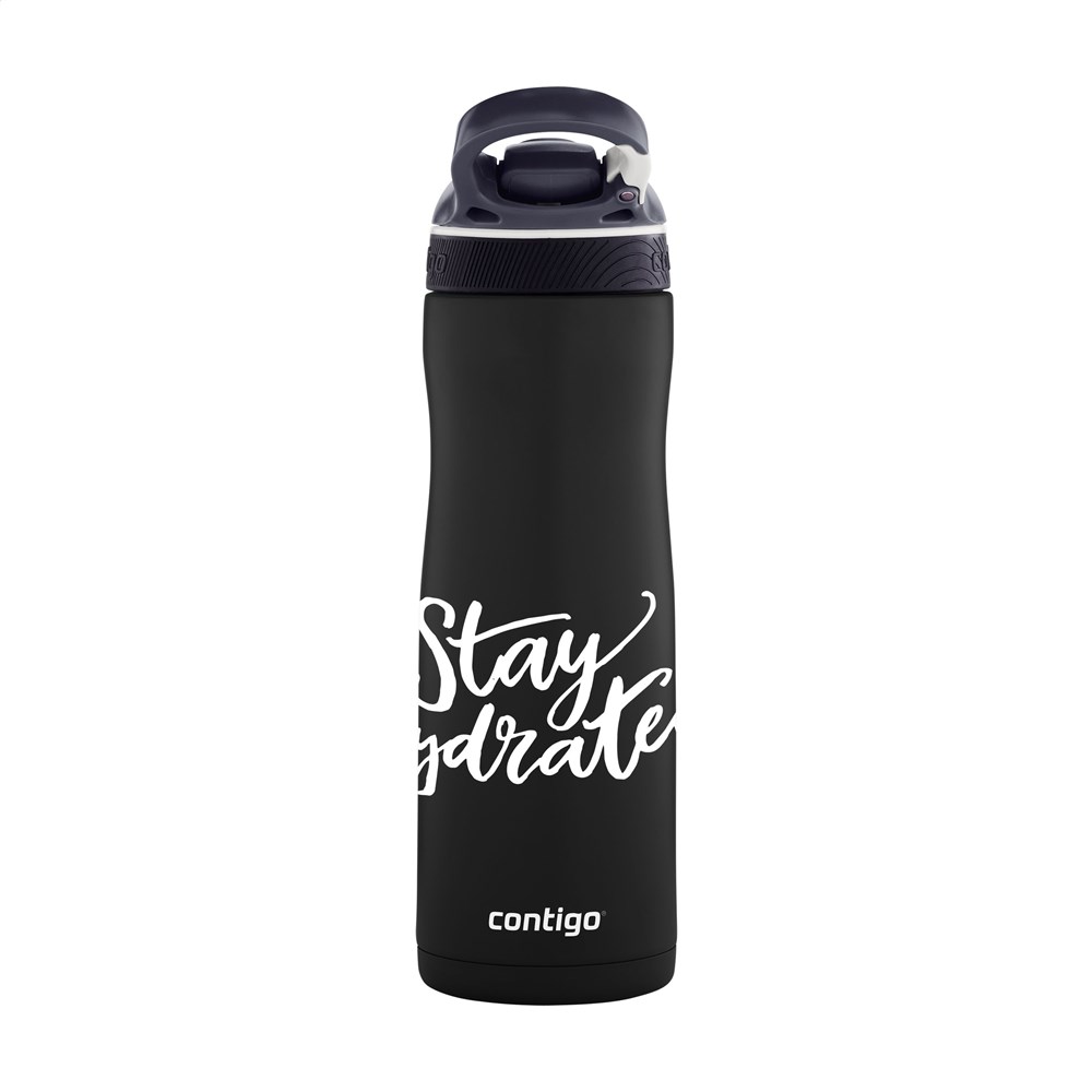 Wasserflasche aus rostfreiem Edelstahl mit vakuumisolierter Wand und AUTOSPOUT®-Technologie. Die Trinköffnung wird so sicher gegen Schmutz und Bakterien verschlossen. Mit einzigartigem Verschlusssystem und Karabinerhaken. Diese Trinkflasche hält gekühlte Getränke bis zu 24 Stunden kalt. Leicht zu reinigen. Inklusive Gebrauchsanweisung. Fassungsvermögen: 590 ml. LAGERBESTANDSINFORMATION: Bis zu 1.000 Stück innerhalb von 10 Arbeitstagen verfügbar. Ausnahmen vorbehalten. Contigo® der Spezialist bei Qualität, Design und Technologie. Direkt erkennbar an dem schlichten und zeitlosen Design - haltbar und robust. Die innovativen Contigo Wasserflaschen und Thermobecher sind geschmacksneutral, BPA-frei und basieren auf den revolutionären AUTOSEAL® und AUTOSPOUT®-Technologien (2 Jahre Garantie). Die Trinkflaschen sind einer Hand zu bedienen und garantiert tropfsicher, so ist die überall und jederzeit nutzbar. Entscheiden Sie sich für eine dauerhafte Werbung mit unseren Favoriten!