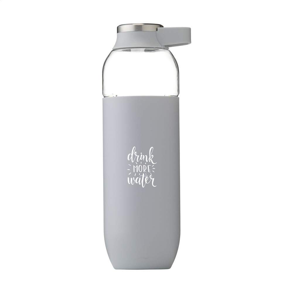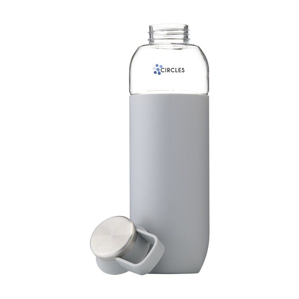 Luxuswasserflasche aus klarem, hochwertigem Eastman Tritan™: BPA-frei, umweltbewusst, nachhaltig und wiederverwendbar. Mit auffallender, weicher PP-Schutzhülle. Schraubverschluss mit Edelstahlakzent und praktischem Tragring. Auslaufsicher. Fassungsvermögen: 740 ml.