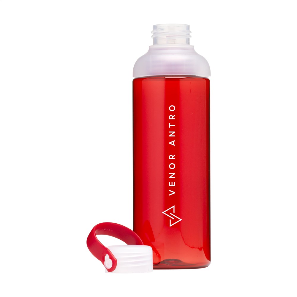 Stylische Wasserflasche aus klarem, hochwertigem Eastman Tritan™; BPA-frei, umweltbewusst, nachhaltig und wiederverwendbar. Die Flasche hat eine großzügige Öffnung und ist daher leicht zu reinigen. Mit PP-Schraubverschluss mit kleiner, verschließbarer Trinköffnung. Mit praktischer Trageschlaufe. Auslaufsicher. Fassungsvermögen: 600 ml.
