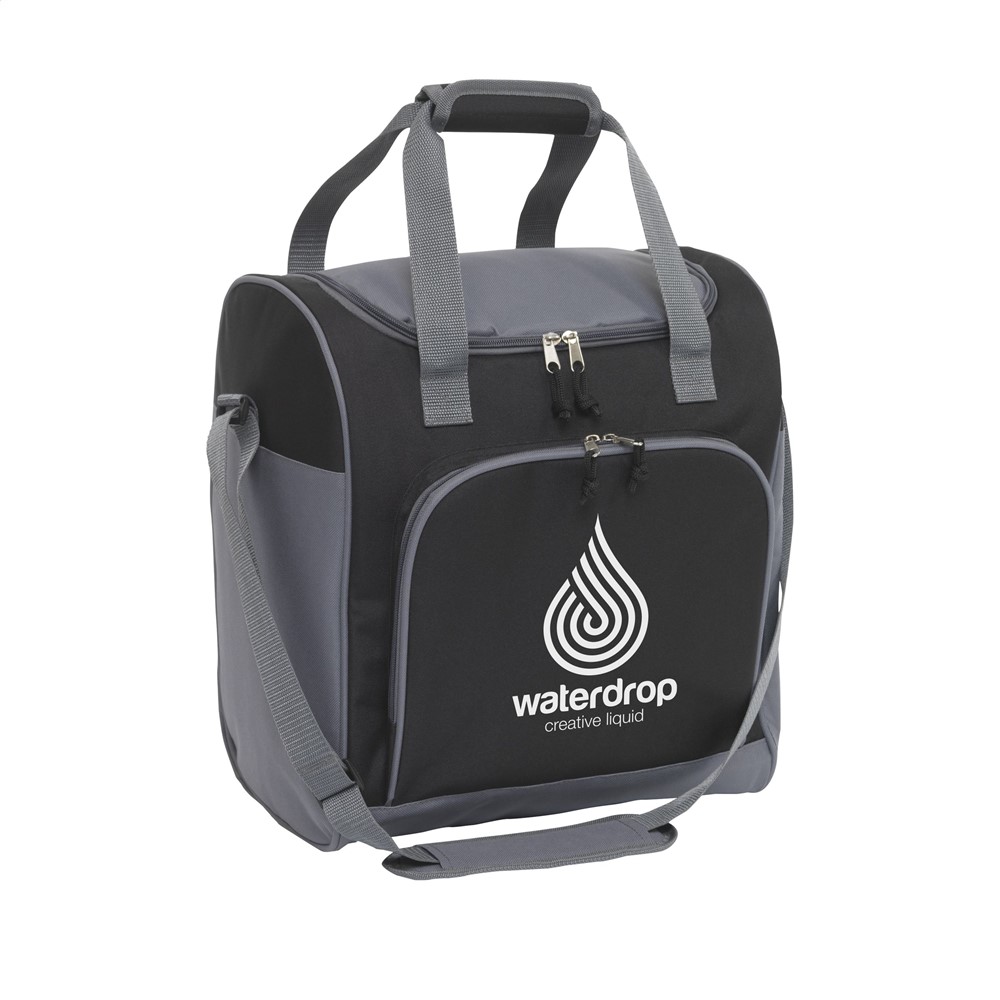 Feste Kühltasche aus 600D Polyester. Mit einem großen Kühlfach und einer Reissverschlusstasche, anpassbarem Schulterriemen mit Schulterpolster und 2 Griffen. Großes Fach: passend für 6 Flaschen mit bis zu 2 Litern.
