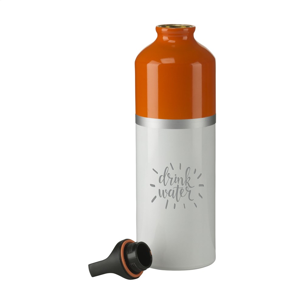Leichte Aluminium-Wasserflasche mit angenehmem Drehverschluss, passendem Farbakzent und auffallender silberner Linie rundum. Tropffrei. Fassungsvermögen: 750 ml. Pro Stück in einer Verpackung.