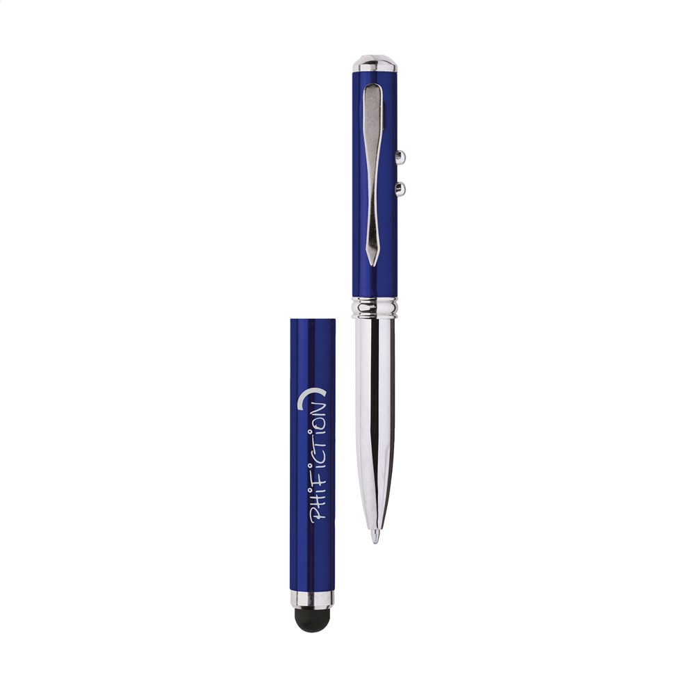 Blauschreibender Kugelschreiber aus Aluminium mit gummiertem Pointer für die Bedienung von Touchscreens (wie iPhone/iPad), integriertem Laserpointer, hellweißer LED-Lampe und Metallclip. Inkl. Batteriezellen. Geben Sie ihrem Geschenk mehr Charakter mit einer unserer stilvollen Geschenkverpackungen.