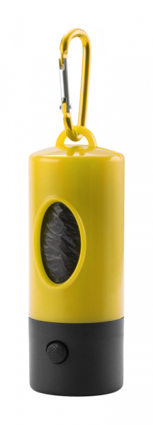 Hundebeutel-Spender aus Kunststoff mit 1 LED Taschenlampe, 15 Beutel und Karabiner aus Aluminium. Inkl. Knopfzellenbatterie.