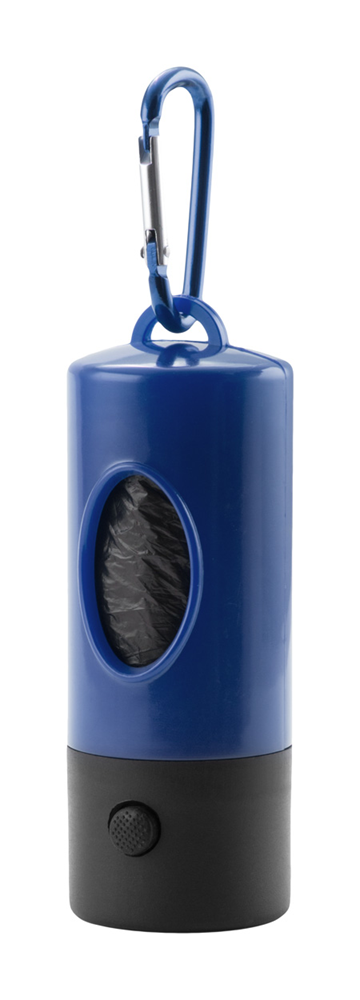 Hundebeutel-Spender aus Kunststoff mit 1 LED Taschenlampe, 15 Beutel und Karabiner aus Aluminium. Inkl. Knopfzellenbatterie.