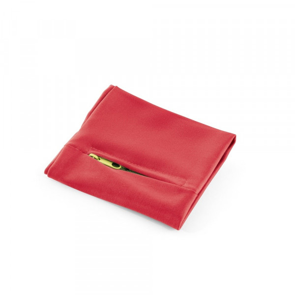 Schweißband aus Polyester mit Reissverschluss. Ideal zur Aufbewahrung kleiner Gegenstände während der Freizeitaktivitäten. 100 x 100 mm