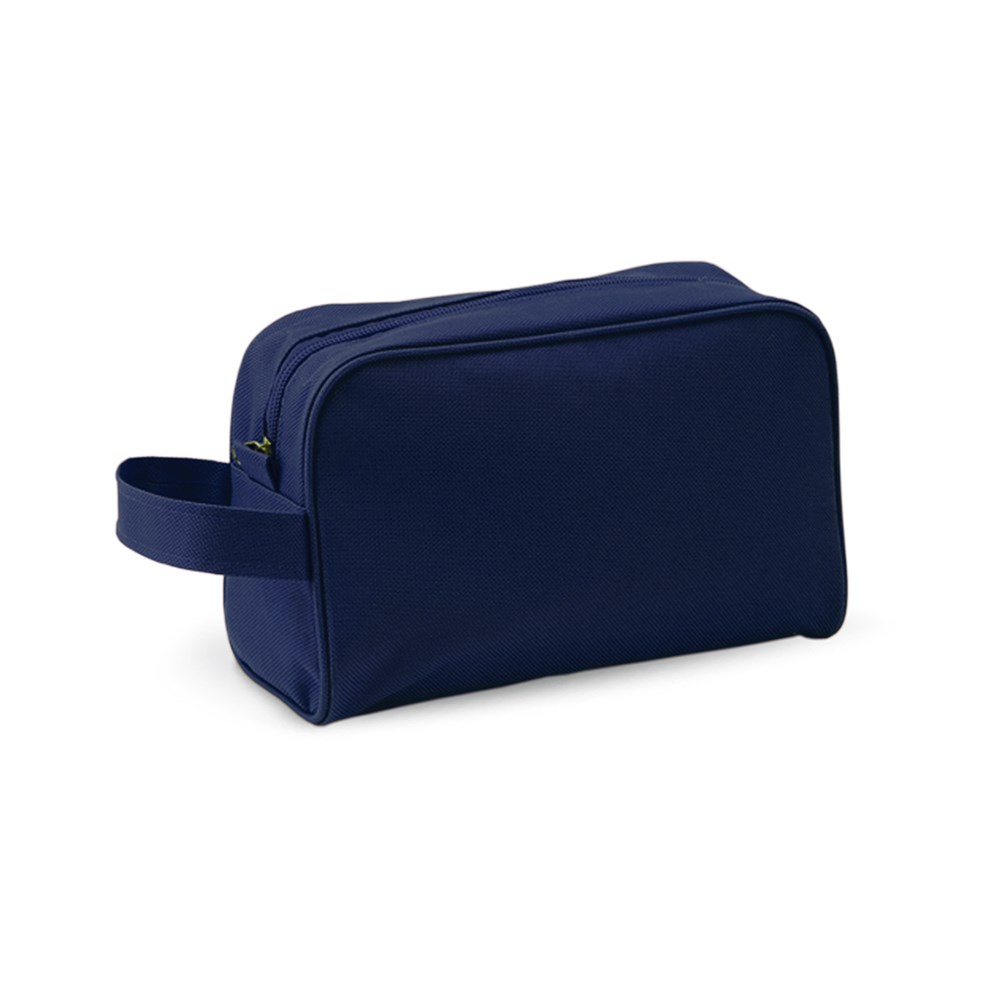 Vielseitig verwendbarer Kulturbeutel aus strapazierfähigem 600D Polyester in kräftigen Farben. Mit Reißverschluss, Tragegriff und farblich passender Paspel zur Verstärkung.
