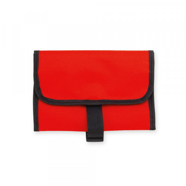 Praktischer Kulturbeutel mit Haken zum Aufhängen aus strapazierfähigem 600D Polyester in kräftigen Farben mit schwarzer Paspel. Außentasche mit Reißverschluss und verstellbarem Riemen mit Klickverschluss. Weiches Polyester-Innenfutter mit verschiedenen Taschen und Netzfach.