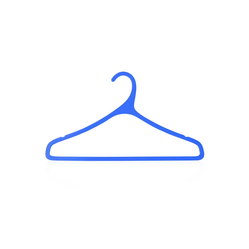 Robuster Kleiderbügel in verschiedenen lebendigen Farben. Mit Aussparung für das Aufhängen von Kleidungsstücken mit dünnen Trägern.