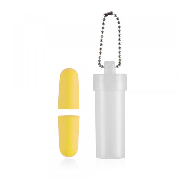 Bequeme Ohrstöpsel aus angenehm weichem EVA-Kunststoff in lebendigen Farben. Präsentiert in einem transparenten Gehäuse mit Kugelkette.