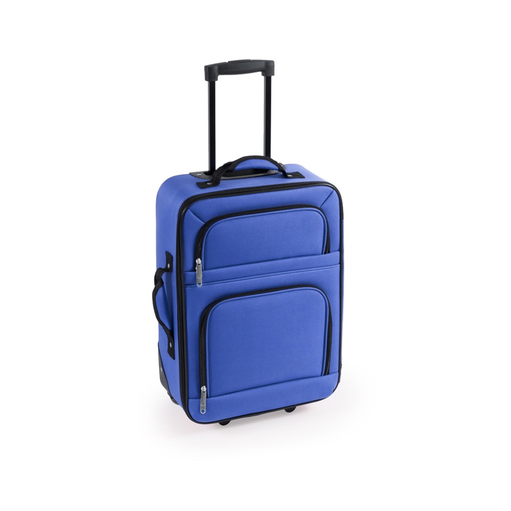Trolley mit 2 Rollen aus robustem 600D Polyester mit fröhlichem zweifarbigem Design. Reißverschluss-Hauptfach mit zwei Zippern mit Löchern für die Anbringung eines Vorhängeschlosses. Zudem mit zwei Außentaschen mit Reißverschluss, zwei Tragegriffen mit Polsterung sowie einem verstärktem Boden mit stabilen Standbeinen und farblich passenden Rollen. Im Inneren mit zwei separaten Fächern mit verschiedenen Taschen und Spanngurten zur Befestigung.