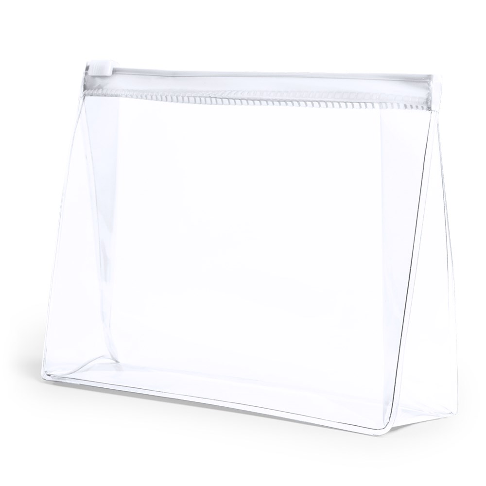 Vielseitig verwendbarer Kulturbeutel aus robustem, transparentem PVC in verschiedenen Farben. Mit farblich passendem Ziplock-Verschluss.