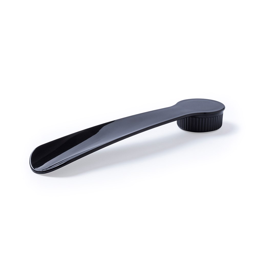 2-in-1 Schuhanzieher in schlichten Farben. Mit integriertem Schuhputzschwamm mit Schraubverschluss.