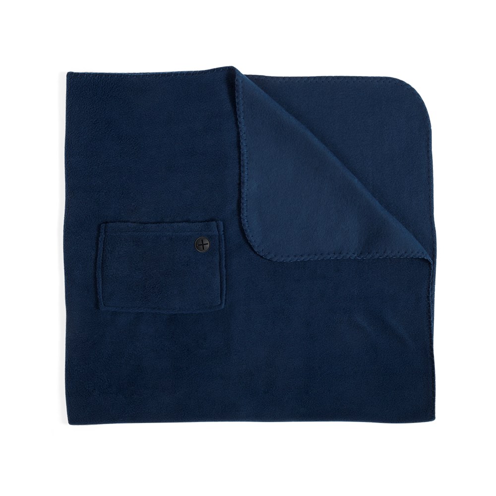 Decke mit den Maßen 115 x 85 cm aus weichem und warmem Polar-Fleece (180 g/m2) mit Anti-Pilling-Behandlung. In verschiedenen lebendigen Farben und mit Fronttasche mit Kopfhörerausgang.