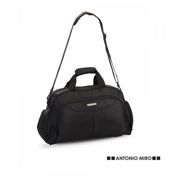 Tasche von Antonio Miró aus schlichtem 1680D Polyester in Schwarz. Mit dem Markenlogo aus Metall, Doppelreißverschluss und Seitentaschen.