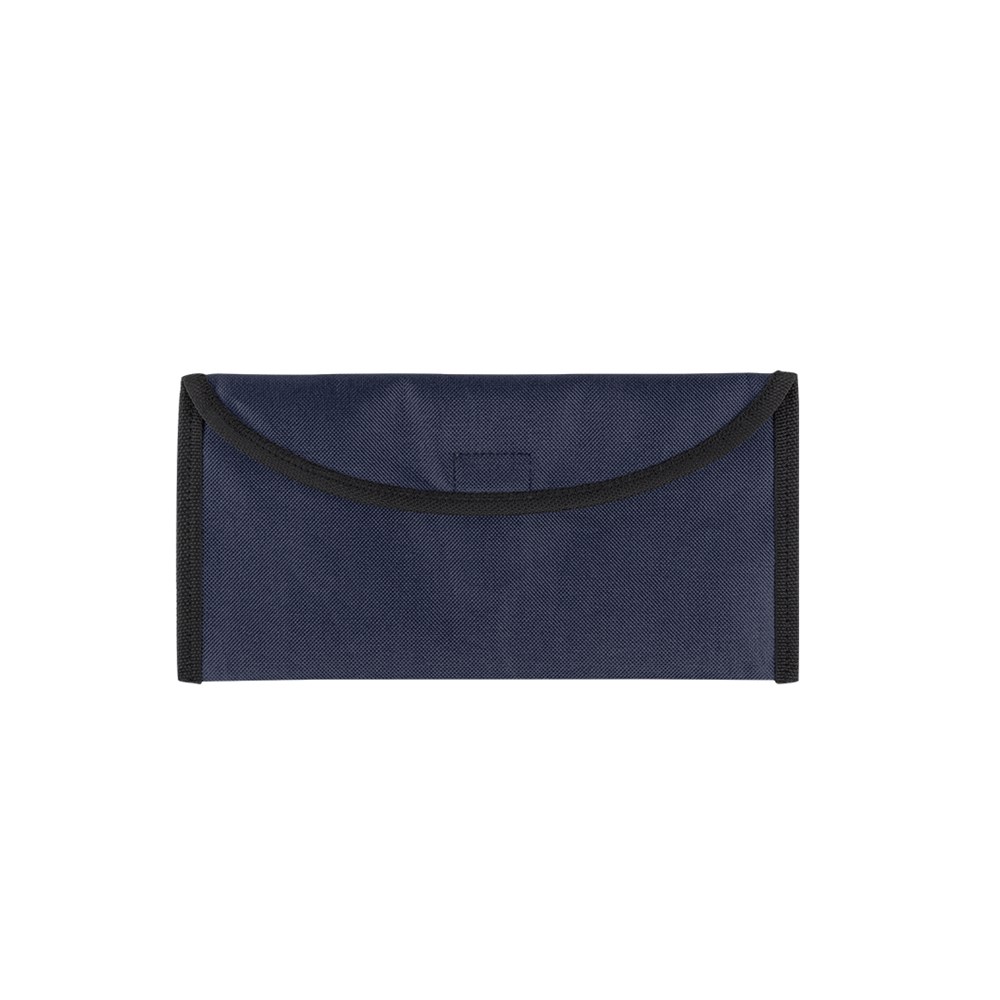 Reisedokumentenhülle aus robustem 600D Polyester in vielen lebendigen Farben. Mit Klettverschluss, Innenfutter und Schlaufe für die Befestigung am Gürtel auf der Rückseite.